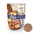 ターキー 60%(心臓、精肉、肝臓、首)、ブイヨン 25.8%、ポテト 5%、ニンジン 4%、リンゴ 4%、ミネラル 1%、亜麻仁油 0.2%